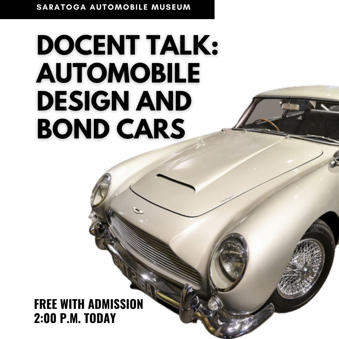 Docent Talk: Automobile Design and Bond Cars Friday, January 27, 2023 11:00 AM 11:30 AM Saratoga Automobile Museum 110 Avenue of the Pines Saratoga Springs, NY, 12866 (map) Google Calendar ICS Free with admission: Meet by the elevator at 11:00AM